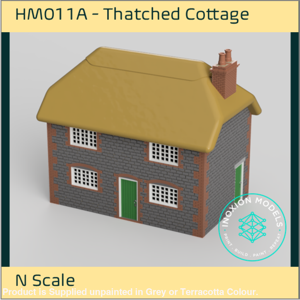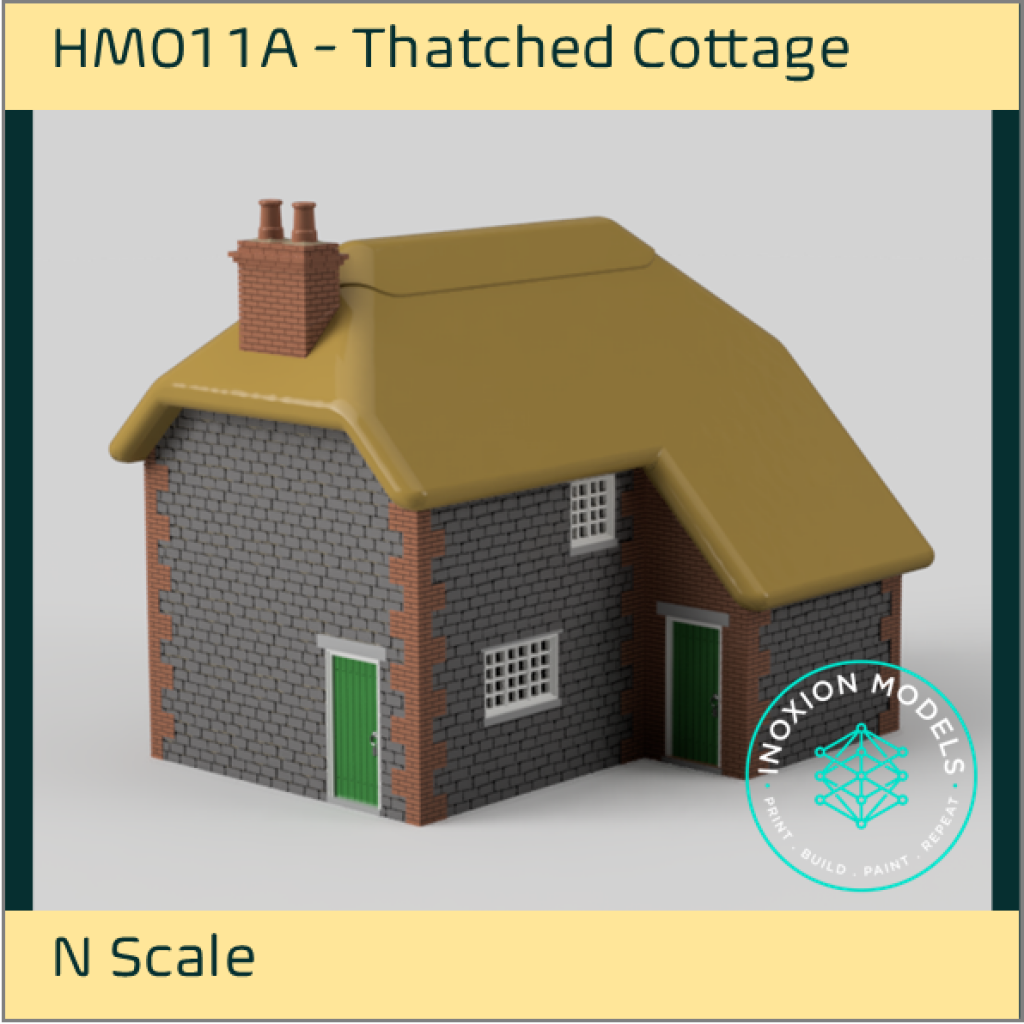 This kit depicts a small thatched cottage. This model depicts a house of a stone construction and birck corners.