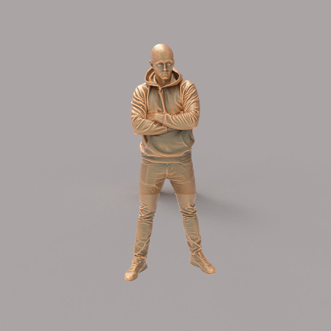 MM150 Walking Male in Coat pointing wearing Flat Cap