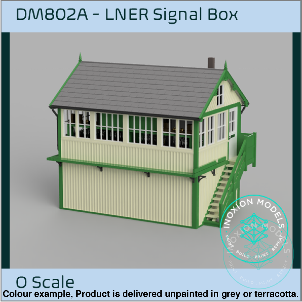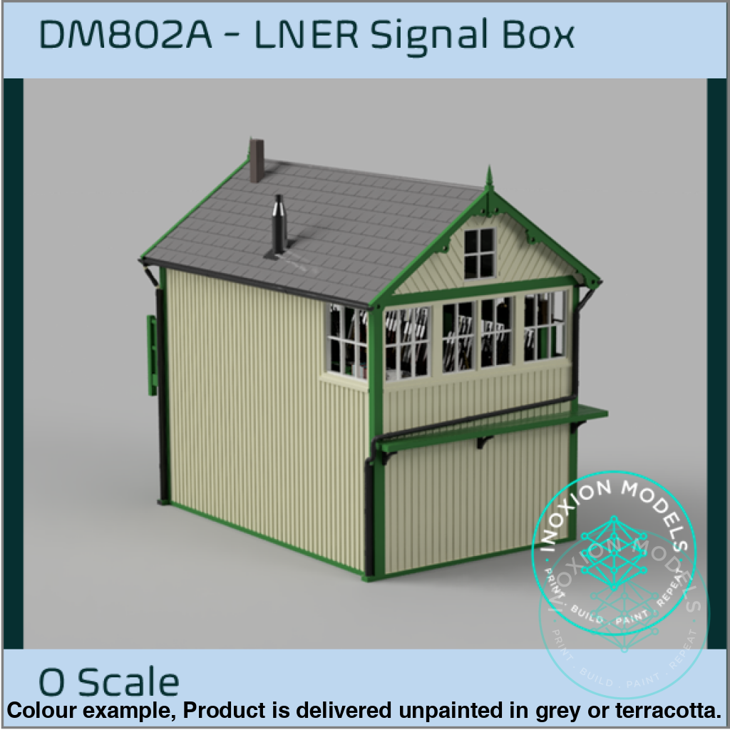 This kit is of a wooden signal box buit by the GCR, which was later amalgamated into the LNER. The model featured a detailed interior, with desks, stove, lock box, lever frame and a shelf with block instruments.