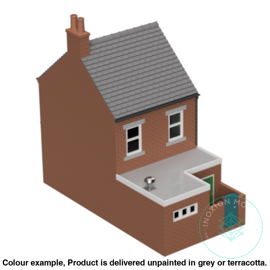 This kit is of a typical basic terrace house, of a style found in many towns and cities accross the UK. This version features a shop on the ground floor and a comercial anex on the rear of the property.