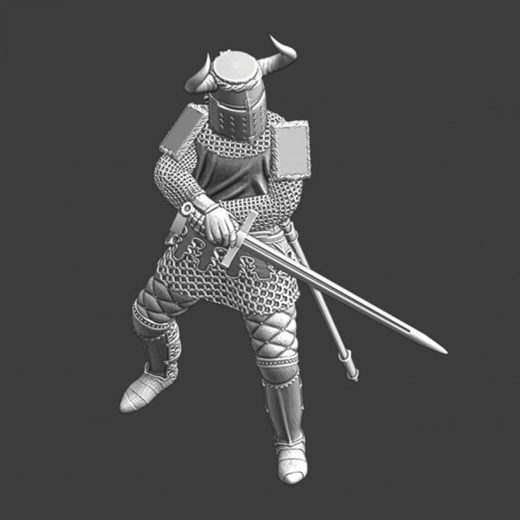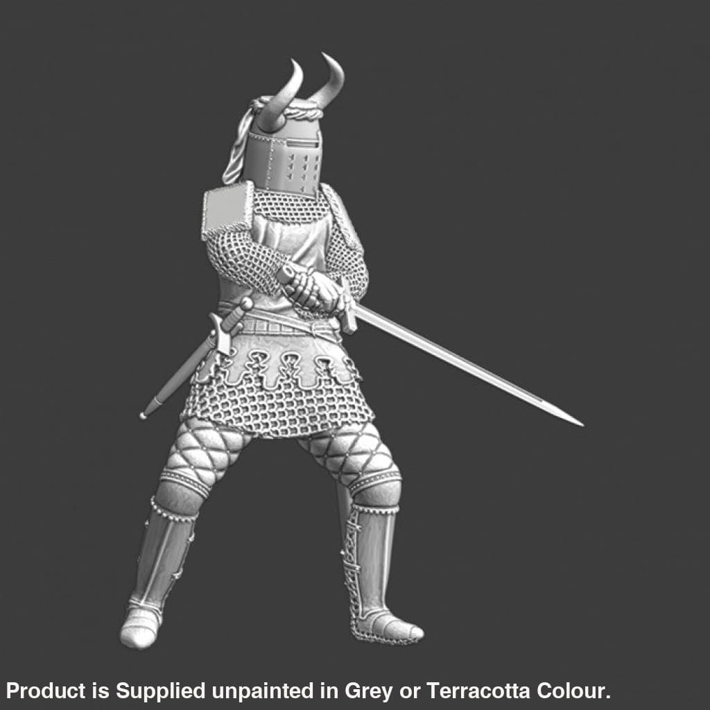 NCM013 Medieval Knight fighting with sword - horned helmet