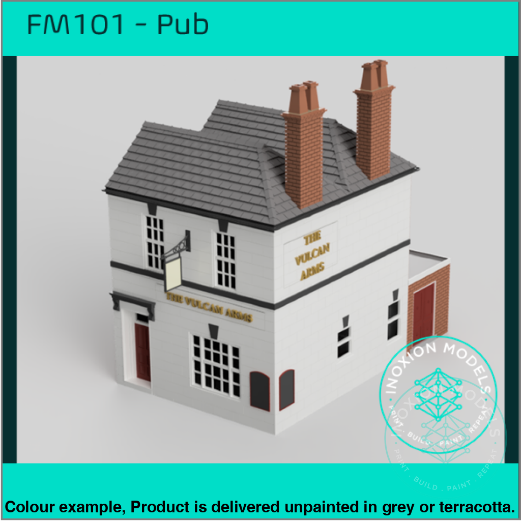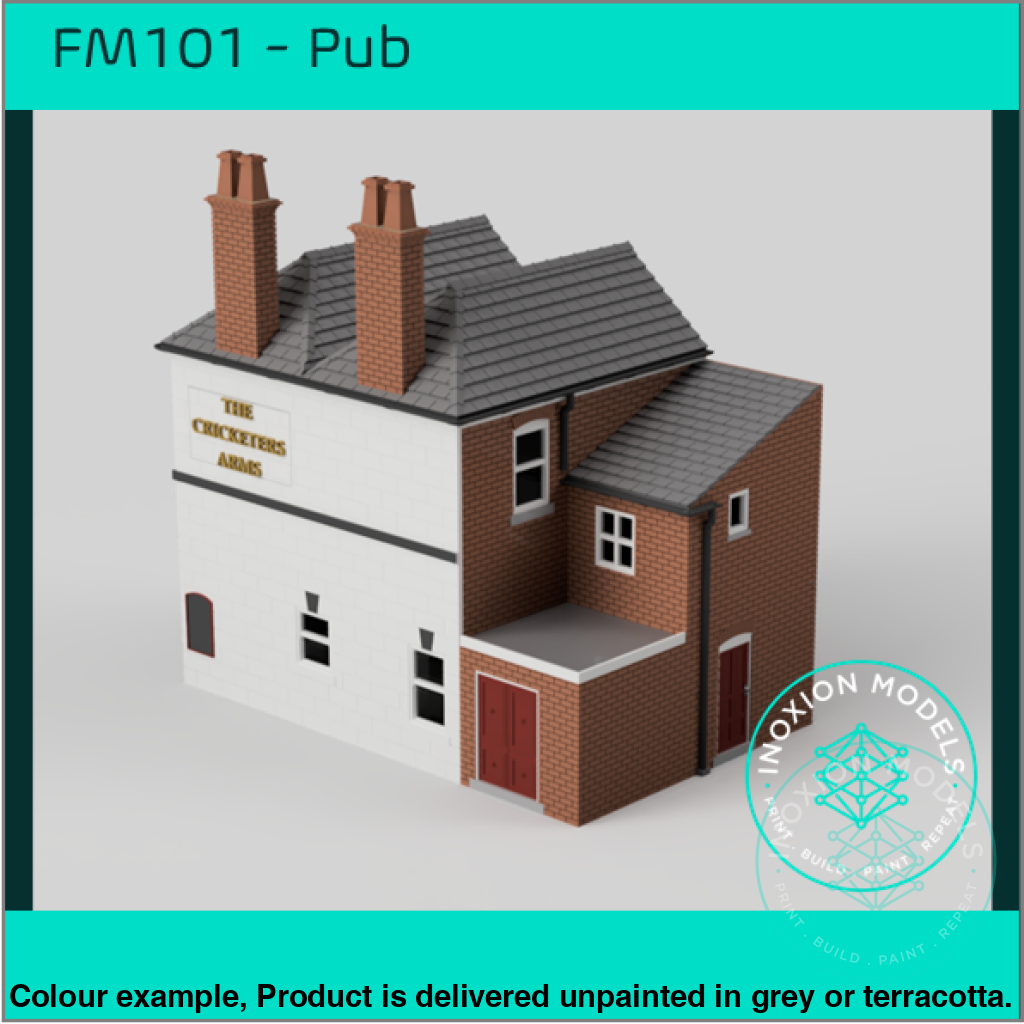 The building is designed to work alongside other kits in the Inoxion Models range such as FM002 – Row House and FM004 – Terrace House.